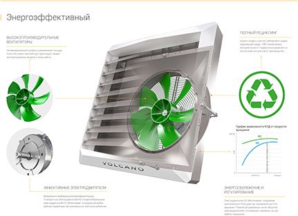 Тепловентиляторы водяные Volcano с двигателем EC (бесколлекторный синхронный двигатель со встроенным электронным управлением)