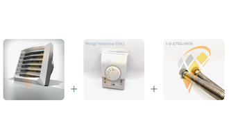 Готовый комплект для быстрого монтажа и ввода в эксплуатацию: воздухонагреватель Волкано РУ Мини АС с пультом управления, консоль (кронштейн) для тепловентилятора, также в комплекте.